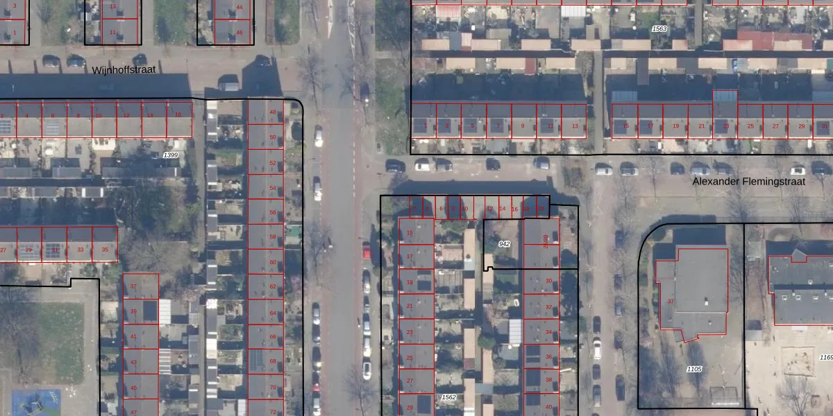 Het perceel waarop Alexander Flemingstraat 2 staat heeft een oppervlakte van 4358 m². Dit is een zeer groot perceel. De perceeloppervlakte wordt geregistreerd door het Kadaster. Gedetailleerde informatie over de maten van dit perceel kunt u vinden in het rapport Kadastrale kaart met maatvoering van Alexander Flemingstraat 2.