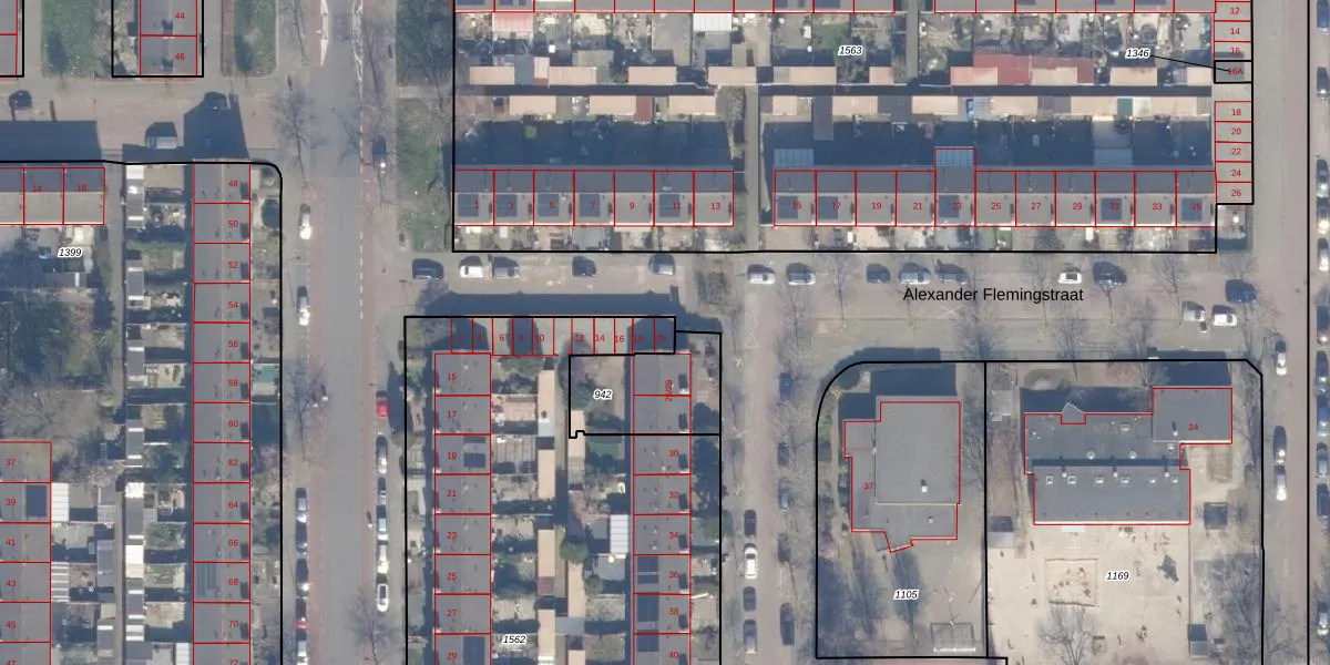 Alexander Flemingstraat 20 is gelegen op kadastraal perceel HLM02Q1562. Deze kadastrale aanduiding is uniek en wordt gebruikt door het Kadaster om eigendomsrechten en andere zakelijke rechten vast te leggen. Het perceel maakt onderdeel uit van de kadastrale gemeente Haarlem.