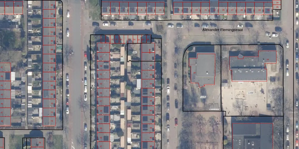 Het perceel waarop Alexander Flemingstraat 32 staat heeft een oppervlakte van 4358 m². Dit is een zeer groot perceel. De perceeloppervlakte wordt geregistreerd door het Kadaster. Gedetailleerde informatie over de maten van dit perceel kunt u vinden in het rapport Kadastrale kaart met maatvoering van Alexander Flemingstraat 32.