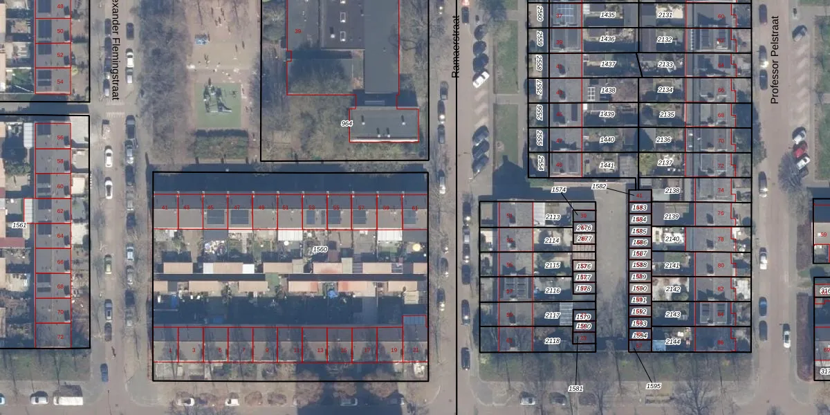 Het perceel waarop Alexander Flemingstraat 61 staat heeft een oppervlakte van 3370 m². Dit is een zeer groot perceel. De perceeloppervlakte wordt geregistreerd door het Kadaster. Gedetailleerde informatie over de maten van dit perceel kunt u vinden in het rapport Kadastrale kaart met maatvoering van Alexander Flemingstraat 61.