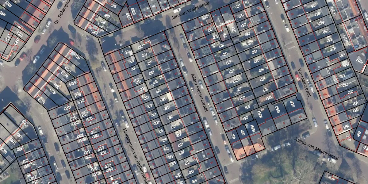 Gebruik de zoekbalk of klik op een perceel voor informatie over de adressen binnen dit perceel.