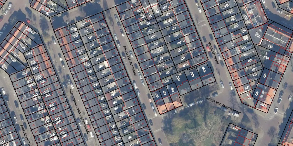 Allard Piersonstraat 19 is gelegen op kadastraal perceel HLM02P448. Deze kadastrale aanduiding is uniek en wordt gebruikt door het Kadaster om eigendomsrechten en andere zakelijke rechten vast te leggen. Het perceel maakt onderdeel uit van de kadastrale gemeente Haarlem.