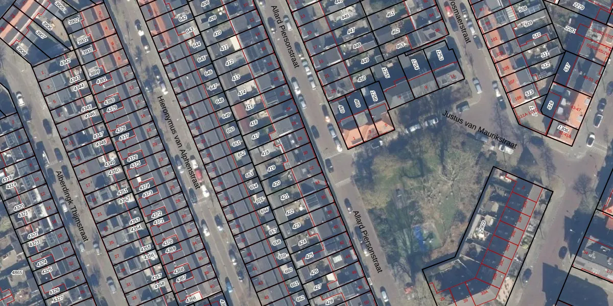 Het perceel waarop Allard Piersonstraat 30 staat heeft een oppervlakte van 107 m². Dit is een middelgroot perceel. De perceeloppervlakte wordt geregistreerd door het Kadaster. Gedetailleerde informatie over de maten van dit perceel kunt u vinden in het rapport Kadastrale kaart met maatvoering van Allard Piersonstraat 30.
