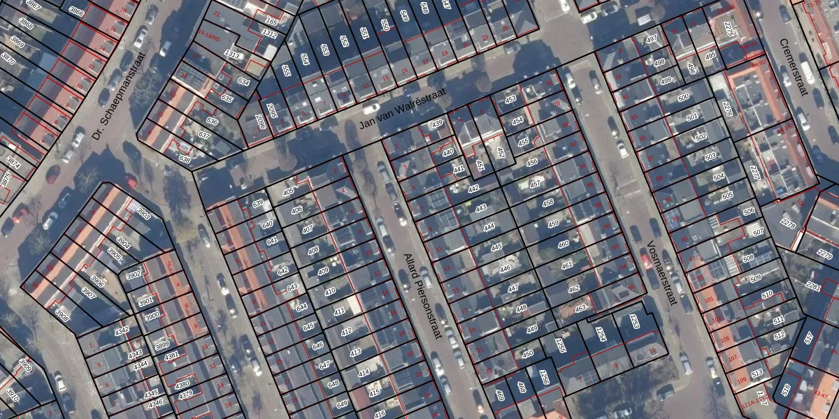 Gebruik de zoekbalk of klik op een perceel voor informatie over de adressen binnen dit perceel.