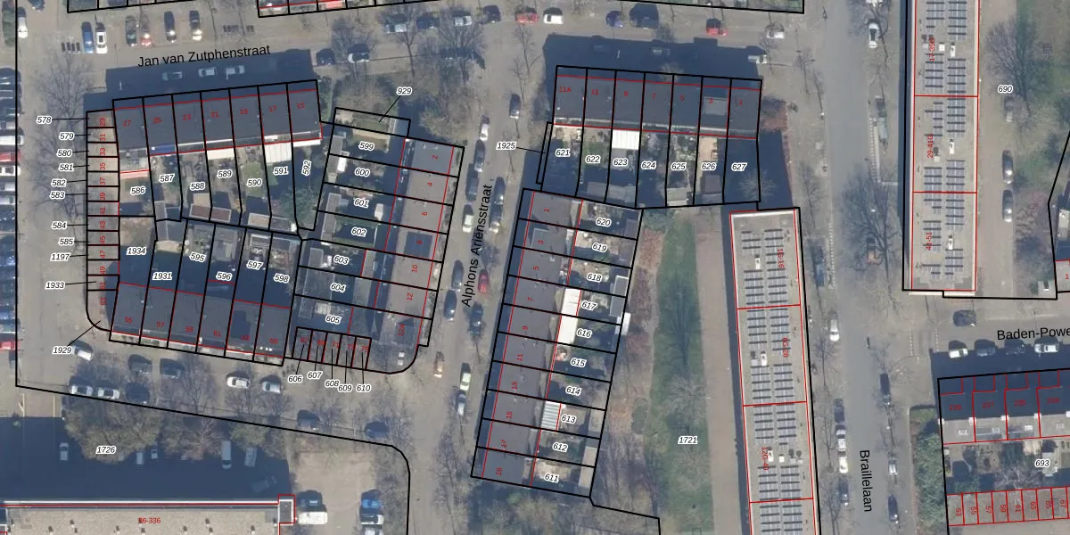 Gebruik de zoekbalk of klik op een perceel voor informatie over de adressen binnen dit perceel.