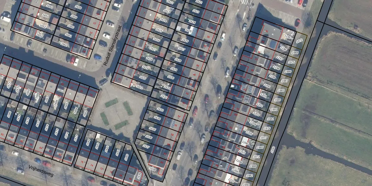 Het adres ligt op het perceel HLM02-V-1631, dat zich in de kadastrale gemeente Haarlem bevindt. Het perceel is kleiner dan gemiddeld in Haarlem. Het perceel is 121 m² groot, terwijl het gemiddelde ligt op 1123,97 m². Het grootste perceel in de kadastrale gemeente is 46,4 ha. Het kleinste perceel heeft een oppervlakte van 0 m². Dit is het enige adres dat aanwezig is op het perceel. De huidige grenzen van het perceel zijn digitaal in de Basisregistratie Kadaster (BRK) geregistreerd op 04-05-2005.