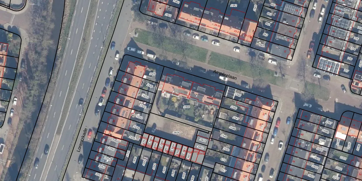Het perceel waarop Ampèrelaan 14-I staat heeft een oppervlakte van 975 m². Dit is een groot perceel. De perceeloppervlakte wordt geregistreerd door het Kadaster. Gedetailleerde informatie over de maten van dit perceel kunt u vinden in het rapport Kadastrale kaart met maatvoering van Ampèrelaan 14-I.