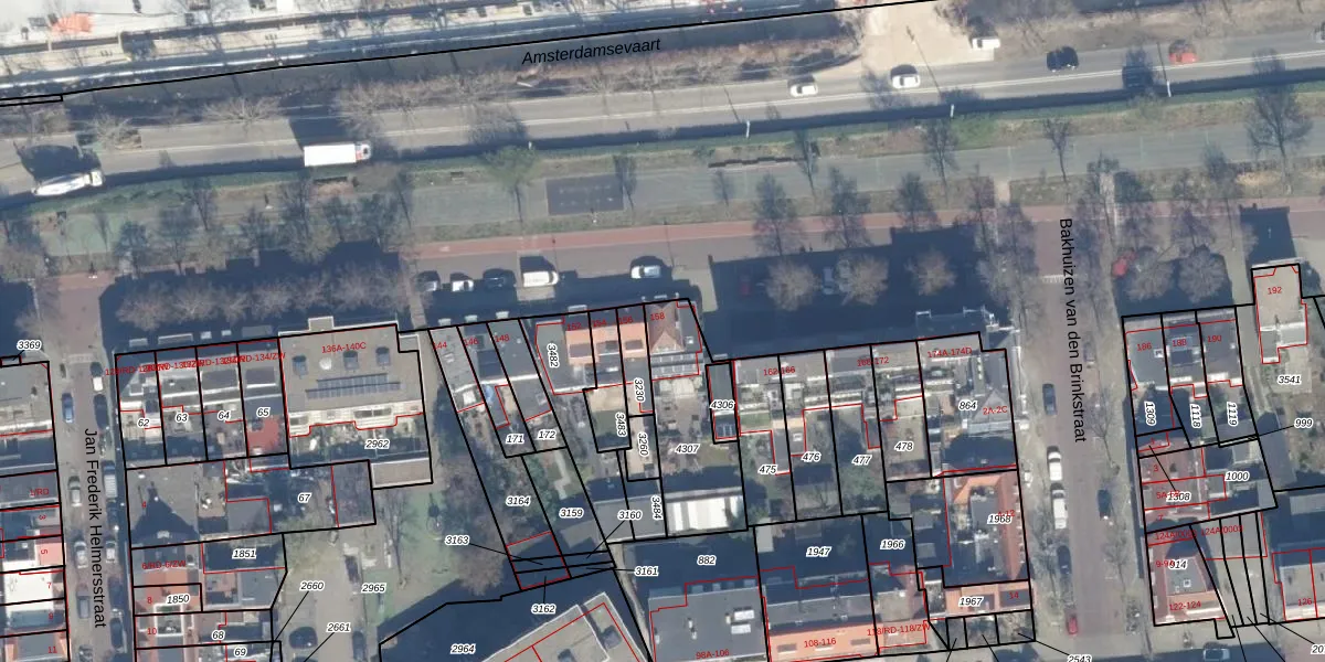 Het perceel waarop Amsterdamsevaart 158 staat heeft een oppervlakte van 341 m². Dit is een groot perceel. De perceeloppervlakte wordt geregistreerd door het Kadaster. Gedetailleerde informatie over de maten van dit perceel kunt u vinden in het rapport Kadastrale kaart met maatvoering van Amsterdamsevaart 158.