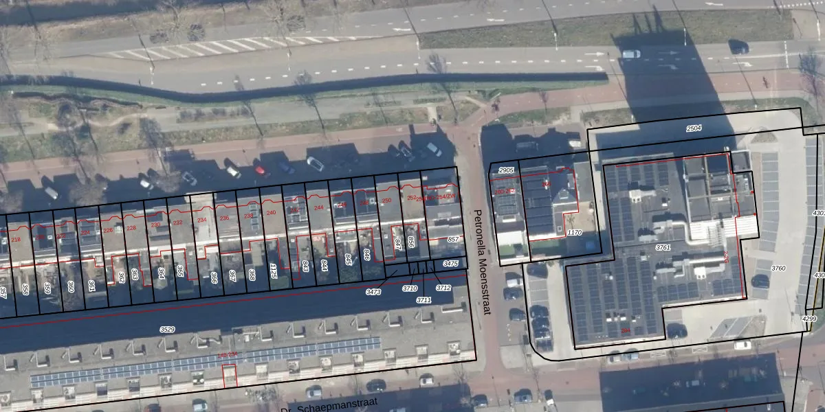 Gebruik de zoekbalk of klik op een perceel voor informatie over de adressen binnen dit perceel.