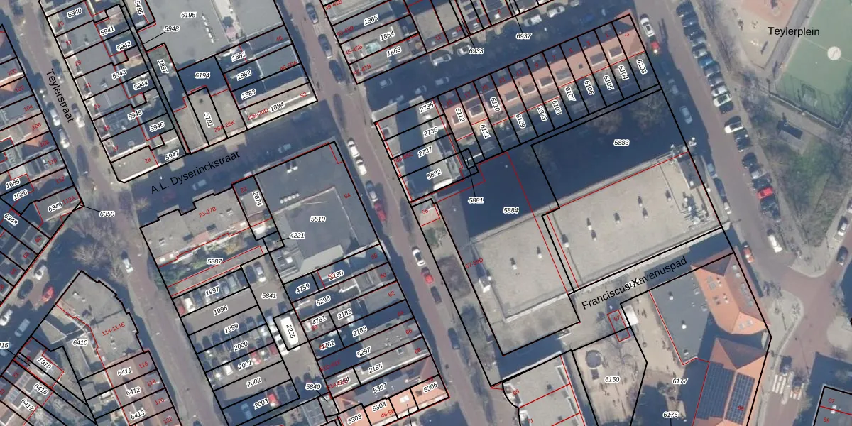 Het perceel waarop het adres ligt is HLM01-E-6149. De afkorting 'HLM01' staat voor kadastrale gemeente Haarlem. Het perceel is met 694 m² relatief groot. Het gemiddelde ligt in de kadastrale gemeente Haarlem op 328,09 m². Het kleinste perceel in de kadastrale gemeente is 0 m² groot. De grootste perceeloppervlakte is 13,9 ha. Er zijn 2 adressen aanwezig op het perceel. De huidige grenzen van het perceel zijn digitaal in de Basisregistratie Kadaster (BRK) geregistreerd op 04-10-2001.