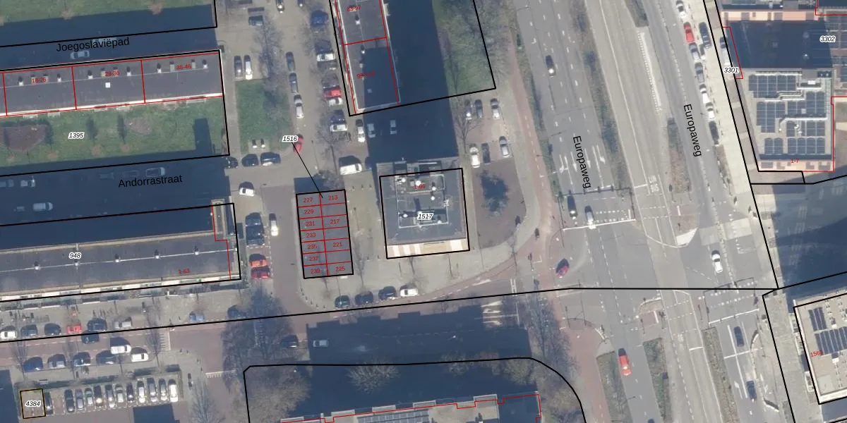Het perceel waarop Andorrastraat 61 staat heeft een oppervlakte van 379 m². Dit is een groot perceel. De perceeloppervlakte wordt geregistreerd door het Kadaster. Gedetailleerde informatie over de maten van dit perceel kunt u vinden in het rapport Kadastrale kaart met maatvoering van Andorrastraat 61.