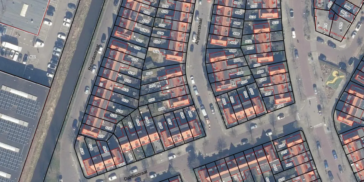Het perceel waarop Anjelierstraat 32 staat heeft een oppervlakte van 157 m². Dit is een middelgroot perceel. De perceeloppervlakte wordt geregistreerd door het Kadaster. Gedetailleerde informatie over de maten van dit perceel kunt u vinden in het rapport Kadastrale kaart met maatvoering van Anjelierstraat 32.