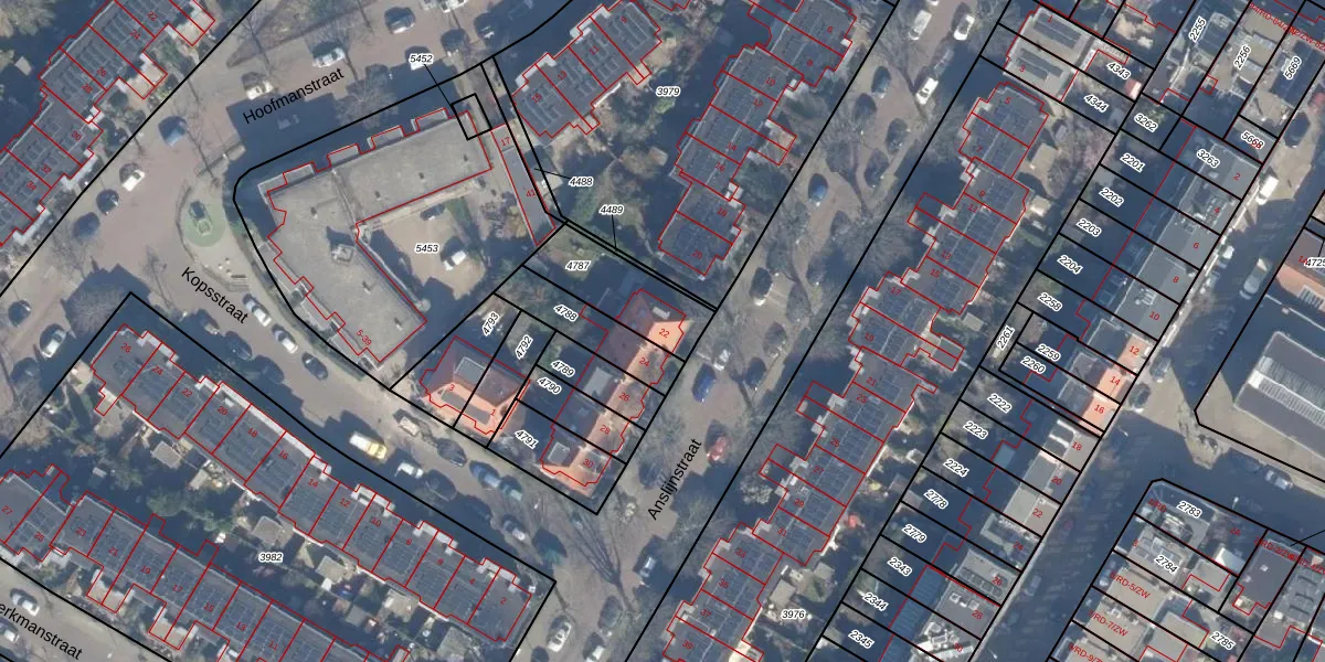 Anslijnstraat 22 is gelegen op kadastraal perceel HLM01A4787. Deze kadastrale aanduiding is uniek en wordt gebruikt door het Kadaster om eigendomsrechten en andere zakelijke rechten vast te leggen. Het perceel maakt onderdeel uit van de kadastrale gemeente Haarlem.