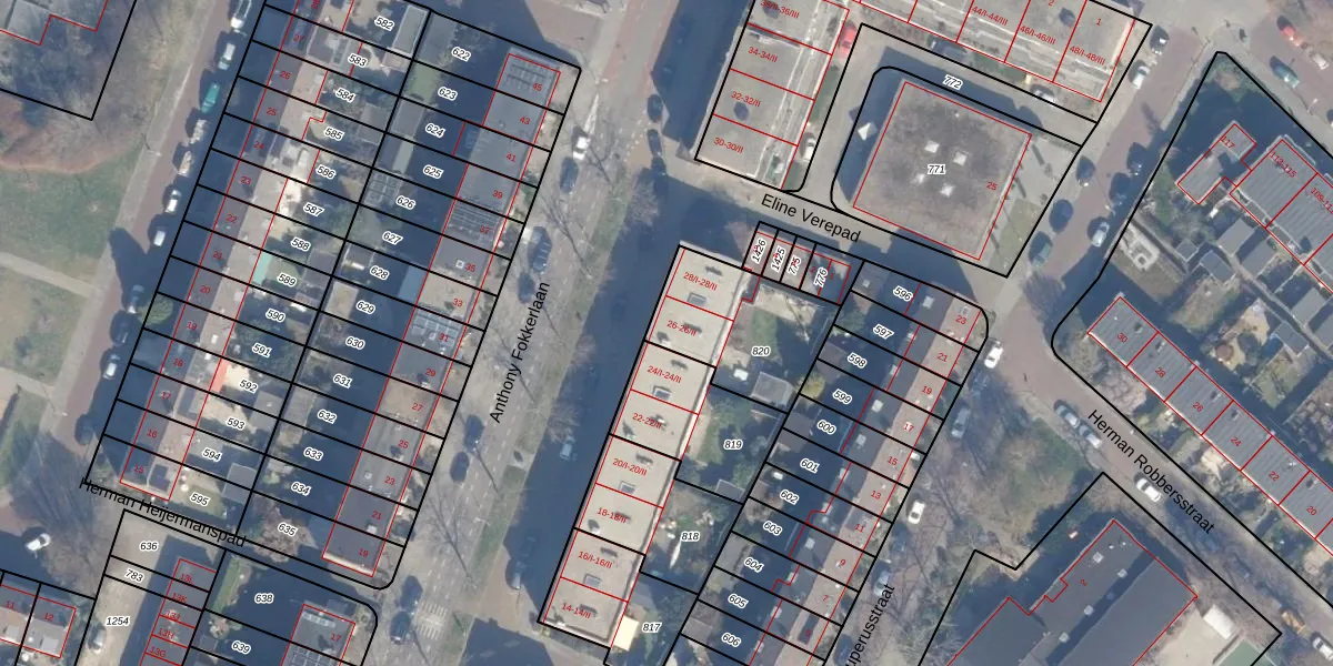 Het perceel waarop Anthony Fokkerlaan 26 staat heeft een oppervlakte van 421 m². Dit is een groot perceel. De perceeloppervlakte wordt geregistreerd door het Kadaster. Gedetailleerde informatie over de maten van dit perceel kunt u vinden in het rapport Kadastrale kaart met maatvoering van Anthony Fokkerlaan 26.
