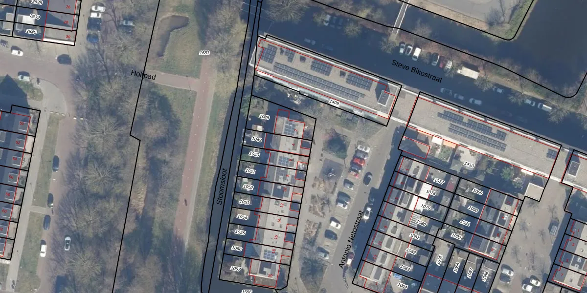 Gebruik de zoekbalk of klik op een perceel voor informatie over de adressen binnen dit perceel.