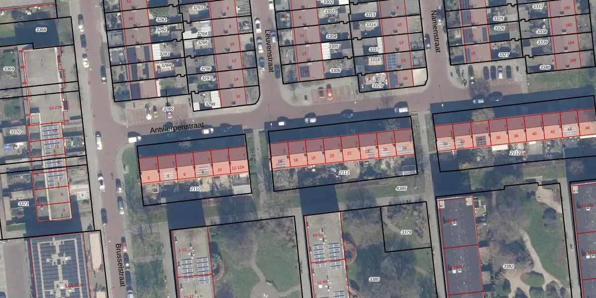 Het perceel waarop Antwerpenstraat 16 staat heeft een oppervlakte van 960 m². Dit is een groot perceel. De perceeloppervlakte wordt geregistreerd door het Kadaster. Gedetailleerde informatie over de maten van dit perceel kunt u vinden in het rapport Kadastrale kaart met maatvoering van Antwerpenstraat 16.