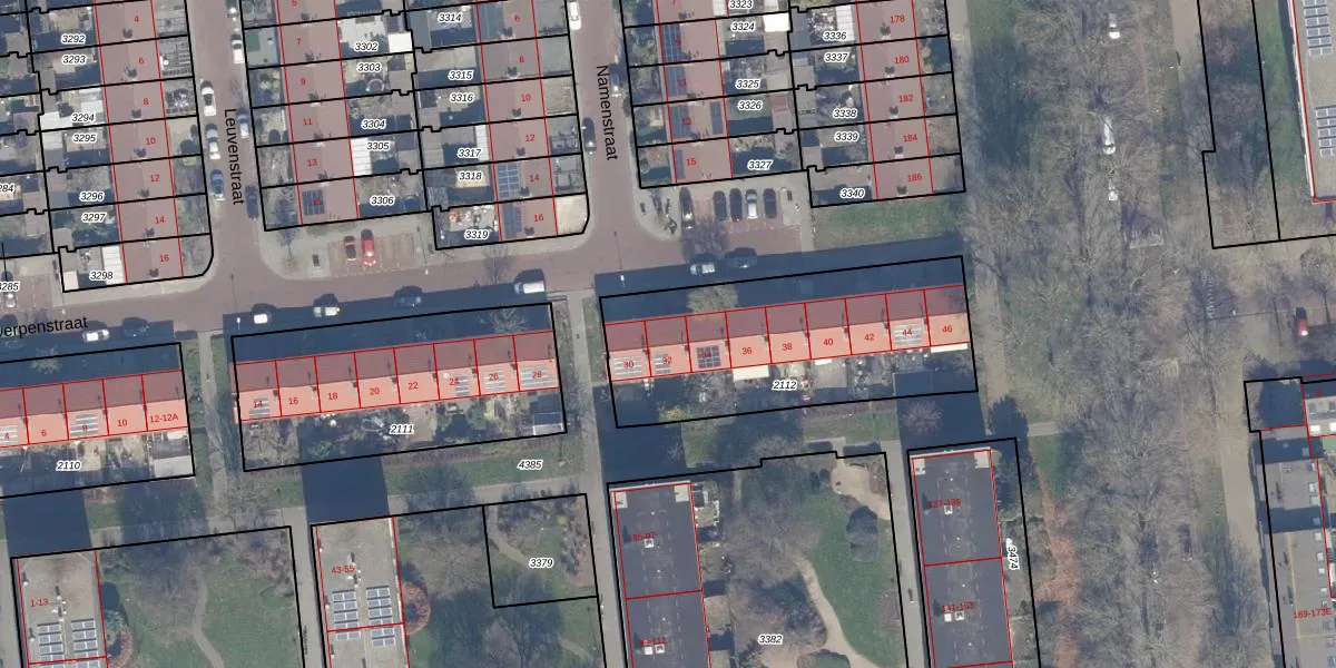 Het perceel waarop Antwerpenstraat 32 staat heeft een oppervlakte van 1090 m². Dit is een zeer groot perceel. De perceeloppervlakte wordt geregistreerd door het Kadaster. Gedetailleerde informatie over de maten van dit perceel kunt u vinden in het rapport Kadastrale kaart met maatvoering van Antwerpenstraat 32.