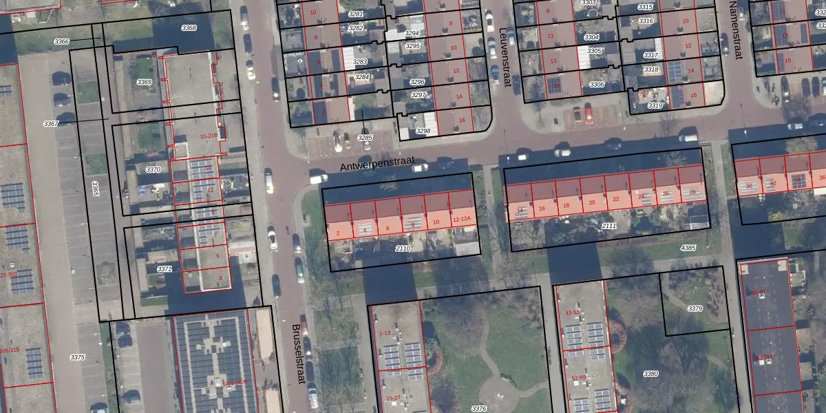 Het perceel waarop Antwerpenstraat 8 staat heeft een oppervlakte van 725 m². Dit is een groot perceel. De perceeloppervlakte wordt geregistreerd door het Kadaster. Gedetailleerde informatie over de maten van dit perceel kunt u vinden in het rapport Kadastrale kaart met maatvoering van Antwerpenstraat 8.