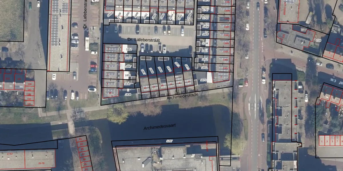 Gebruik de zoekbalk of klik op een perceel voor informatie over de adressen binnen dit perceel.