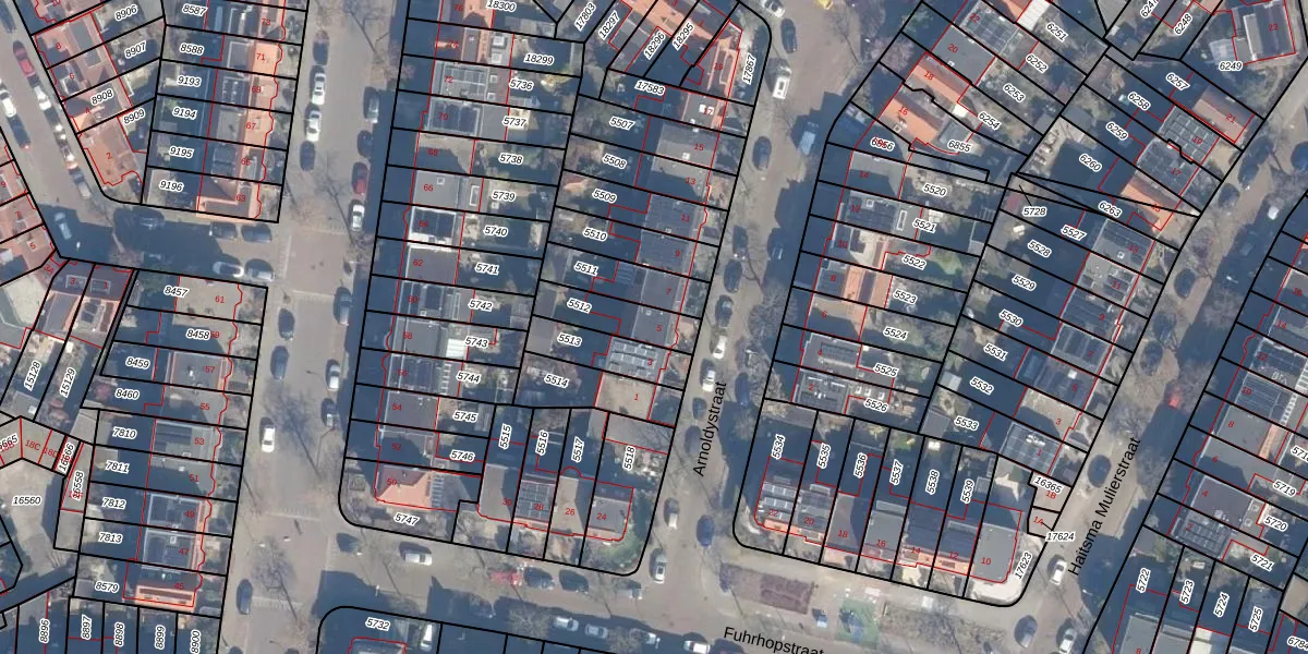 Gebruik de zoekbalk of klik op een perceel voor informatie over de adressen binnen dit perceel.