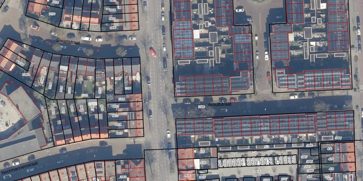 Het perceel waarop Arnulfstraat 1 staat heeft een oppervlakte van 5640 m². Dit is een zeer groot perceel. De perceeloppervlakte wordt geregistreerd door het Kadaster. Gedetailleerde informatie over de maten van dit perceel kunt u vinden in het rapport Kadastrale kaart met maatvoering van Arnulfstraat 1.