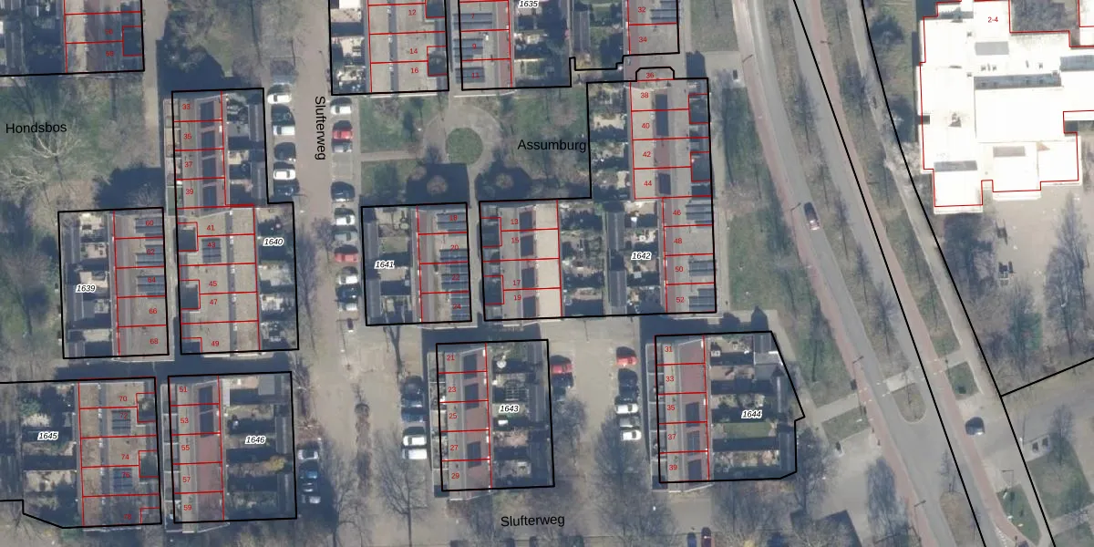 Het perceel waarop Assumburg 17 staat heeft een oppervlakte van 1401 m². Dit is een zeer groot perceel. De perceeloppervlakte wordt geregistreerd door het Kadaster. Gedetailleerde informatie over de maten van dit perceel kunt u vinden in het rapport Kadastrale kaart met maatvoering van Assumburg 17.