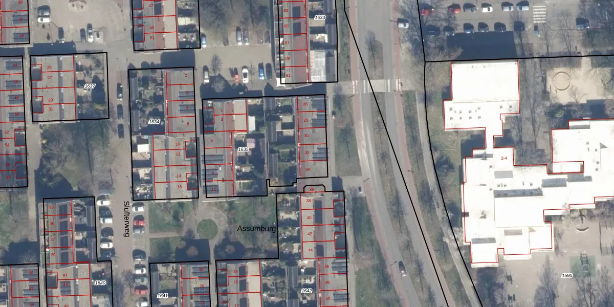 Het perceel waarop Assumburg 32 staat heeft een oppervlakte van 1192 m². Dit is een zeer groot perceel. De perceeloppervlakte wordt geregistreerd door het Kadaster. Gedetailleerde informatie over de maten van dit perceel kunt u vinden in het rapport Kadastrale kaart met maatvoering van Assumburg 32.