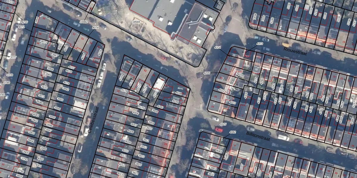 Gebruik de zoekbalk of klik op een perceel voor informatie over de adressen binnen dit perceel.