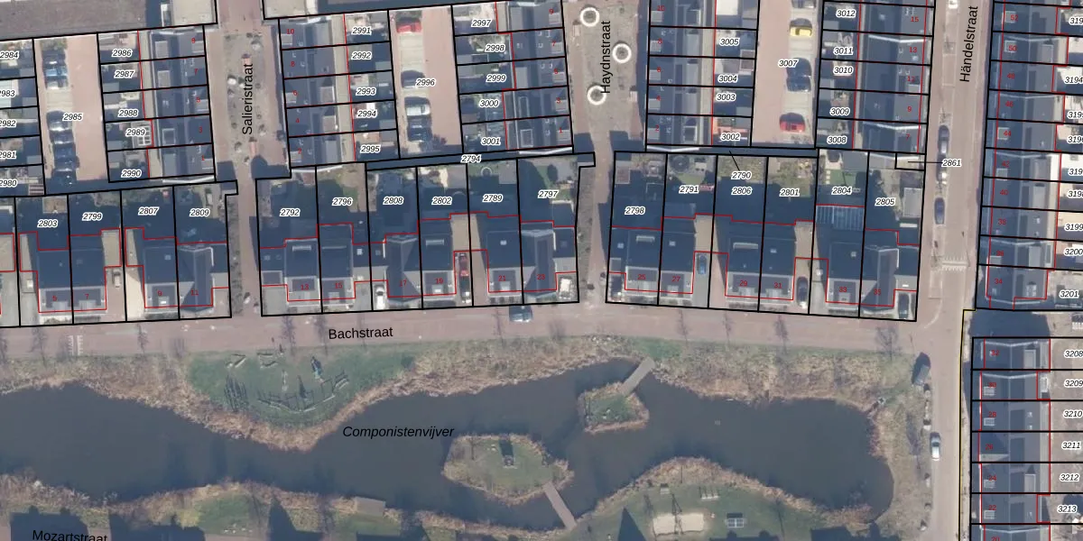 Het perceel waarop Bachstraat 23 staat heeft een oppervlakte van 297 m². Dit is een middelgroot perceel. De perceeloppervlakte wordt geregistreerd door het Kadaster. Gedetailleerde informatie over de maten van dit perceel kunt u vinden in het rapport Kadastrale kaart met maatvoering van Bachstraat 23.
