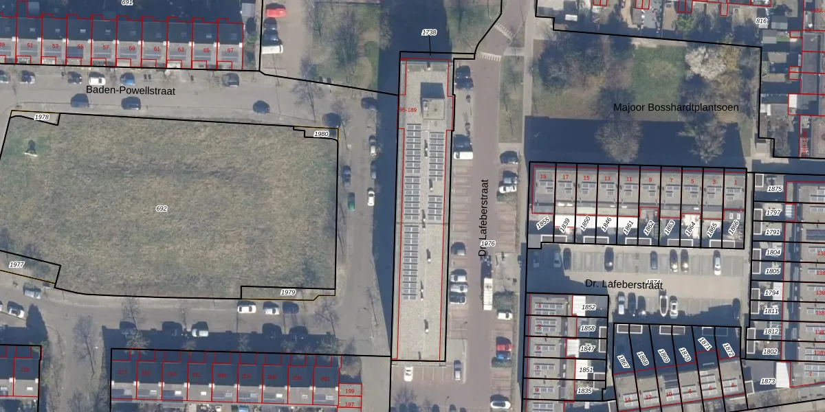 Het perceel waarop Baden-Powellstraat 127 staat heeft een oppervlakte van 992 m². Dit is een groot perceel. De perceeloppervlakte wordt geregistreerd door het Kadaster. Gedetailleerde informatie over de maten van dit perceel kunt u vinden in het rapport Kadastrale kaart met maatvoering van Baden-Powellstraat 127.