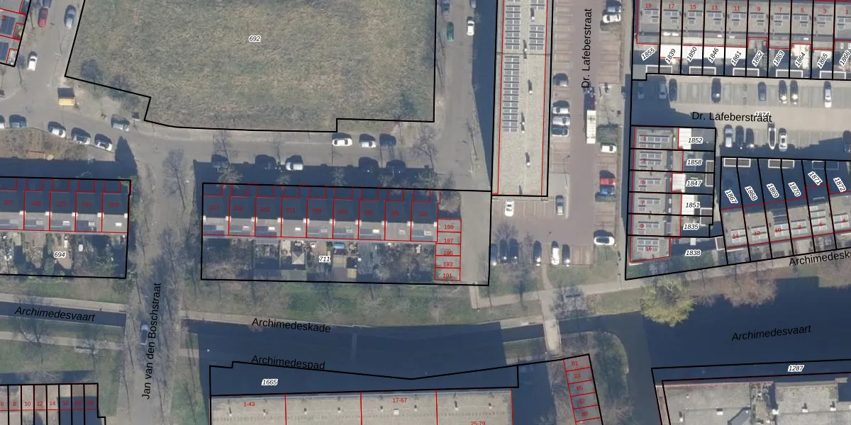 Baden-Powellstraat 201 is gelegen op kadastraal perceel HLM02X711. Deze kadastrale aanduiding is uniek en wordt gebruikt door het Kadaster om eigendomsrechten en andere zakelijke rechten vast te leggen. Het perceel maakt onderdeel uit van de kadastrale gemeente Haarlem.