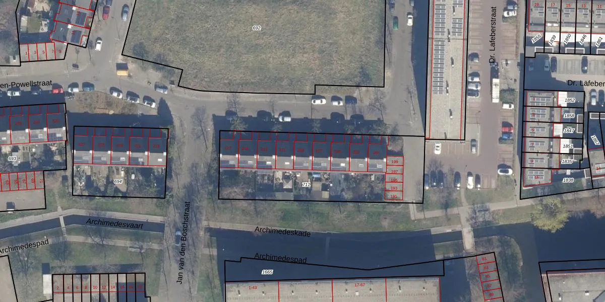 Baden-Powellstraat 209 is gelegen op kadastraal perceel HLM02X711. Deze kadastrale aanduiding is uniek en wordt gebruikt door het Kadaster om eigendomsrechten en andere zakelijke rechten vast te leggen. Het perceel maakt onderdeel uit van de kadastrale gemeente Haarlem.