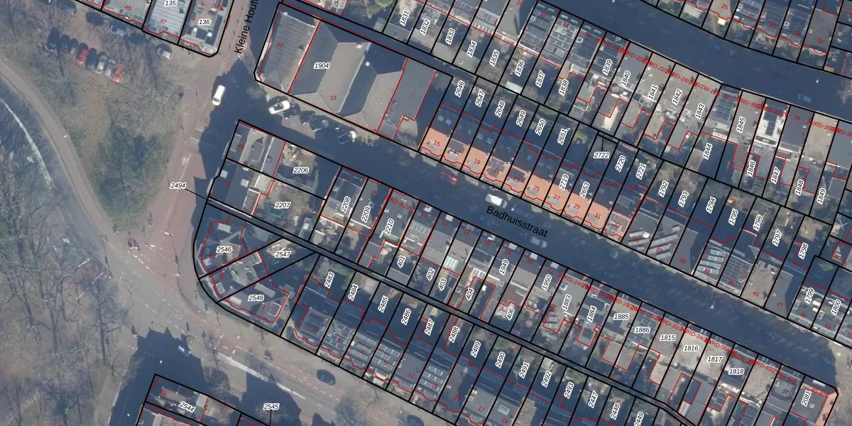 Gebruik de zoekbalk of klik op een perceel voor informatie over de adressen binnen dit perceel.