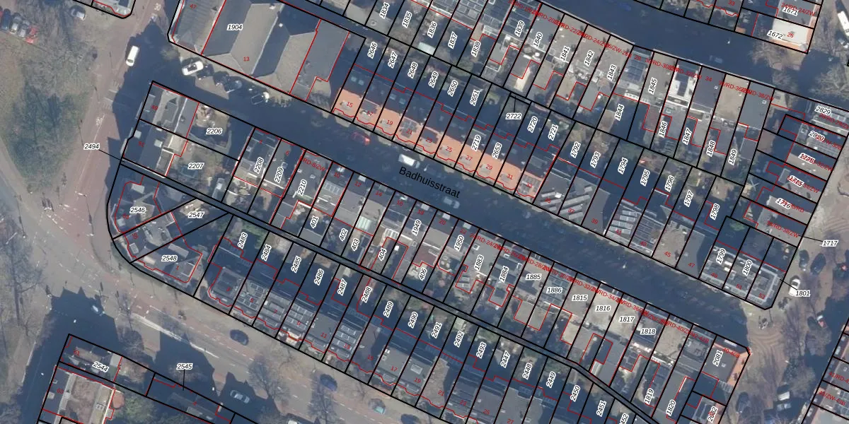 Het perceel waarop Badhuisstraat 18 staat heeft een oppervlakte van 105 m². Dit is een middelgroot perceel. De perceeloppervlakte wordt geregistreerd door het Kadaster. Gedetailleerde informatie over de maten van dit perceel kunt u vinden in het rapport Kadastrale kaart met maatvoering van Badhuisstraat 18.