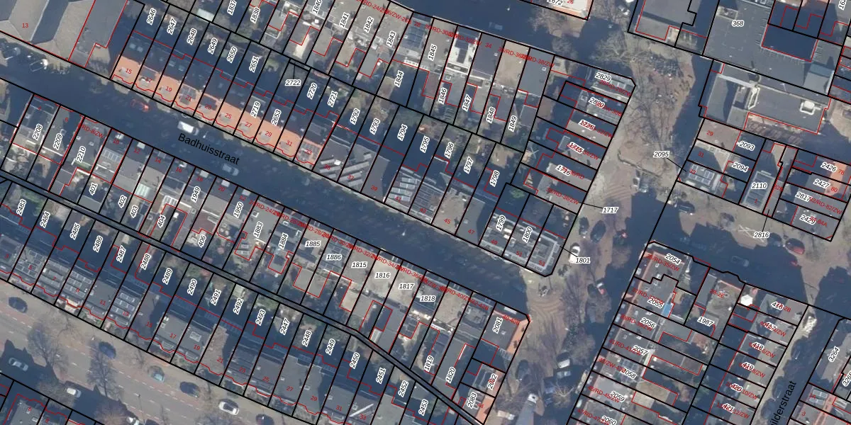Het perceel waarop Badhuisstraat 43 staat heeft een oppervlakte van 142 m². Dit is een middelgroot perceel. De perceeloppervlakte wordt geregistreerd door het Kadaster. Gedetailleerde informatie over de maten van dit perceel kunt u vinden in het rapport Kadastrale kaart met maatvoering van Badhuisstraat 43.