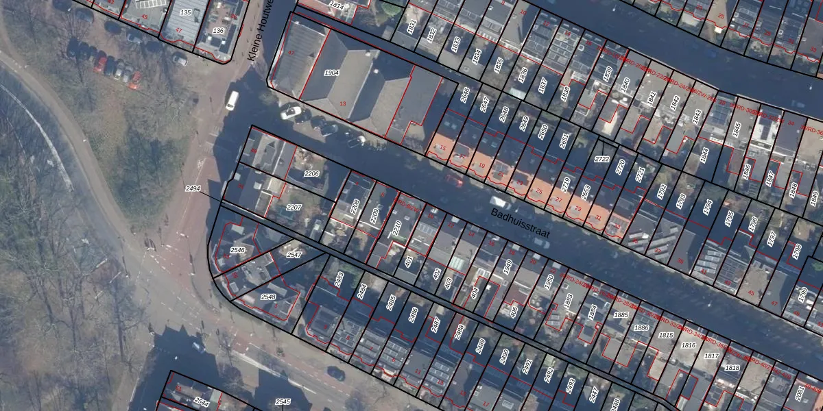 Badhuisstraat 8-ZW is gelegen op kadastraal perceel HLM01K2210. Deze kadastrale aanduiding is uniek en wordt gebruikt door het Kadaster om eigendomsrechten en andere zakelijke rechten vast te leggen. Het perceel maakt onderdeel uit van de kadastrale gemeente Haarlem.
