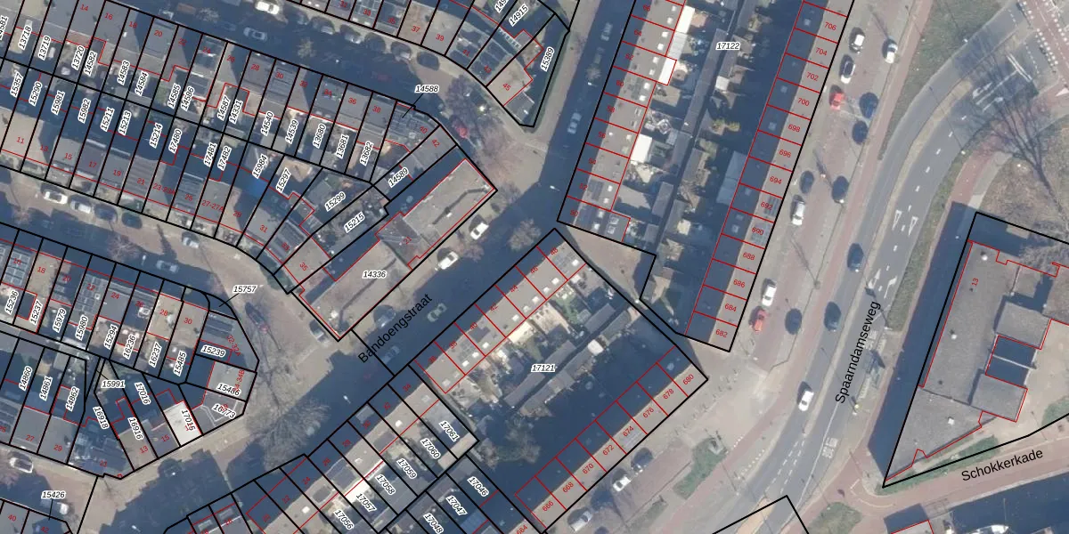 Bandoengstraat 46 is gelegen op kadastraal perceel STN01B17121. Deze kadastrale aanduiding is uniek en wordt gebruikt door het Kadaster om eigendomsrechten en andere zakelijke rechten vast te leggen. Het perceel maakt onderdeel uit van de kadastrale gemeente Schoten.