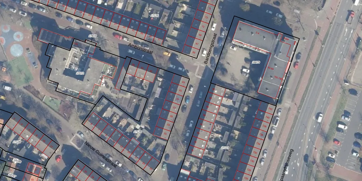 Het perceel waarop Bandoengstraat 61 staat heeft een oppervlakte van 1835 m². Dit is een zeer groot perceel. De perceeloppervlakte wordt geregistreerd door het Kadaster. Gedetailleerde informatie over de maten van dit perceel kunt u vinden in het rapport Kadastrale kaart met maatvoering van Bandoengstraat 61.