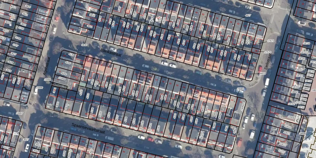 Het perceel waarop Bankastraat 22 staat heeft een oppervlakte van 84 m². Dit is een klein perceel. De perceeloppervlakte wordt geregistreerd door het Kadaster. Gedetailleerde informatie over de maten van dit perceel kunt u vinden in het rapport Kadastrale kaart met maatvoering van Bankastraat 22.