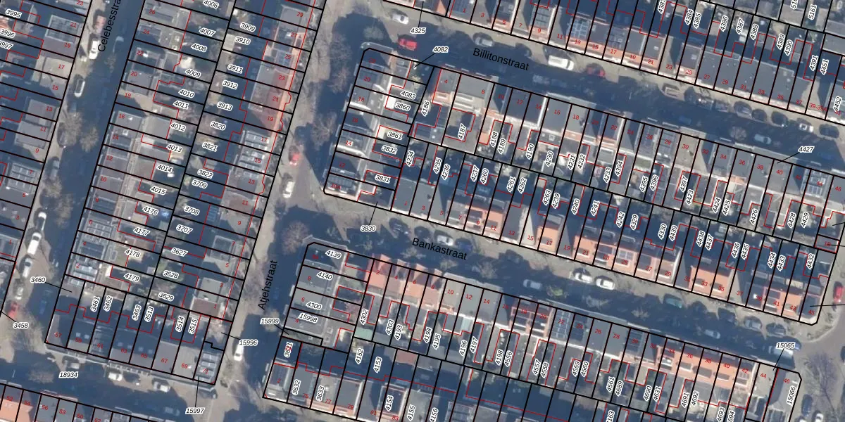 Het perceel waarop Bankastraat 3 staat heeft een oppervlakte van 79 m². Dit is een klein perceel. De perceeloppervlakte wordt geregistreerd door het Kadaster. Gedetailleerde informatie over de maten van dit perceel kunt u vinden in het rapport Kadastrale kaart met maatvoering van Bankastraat 3.