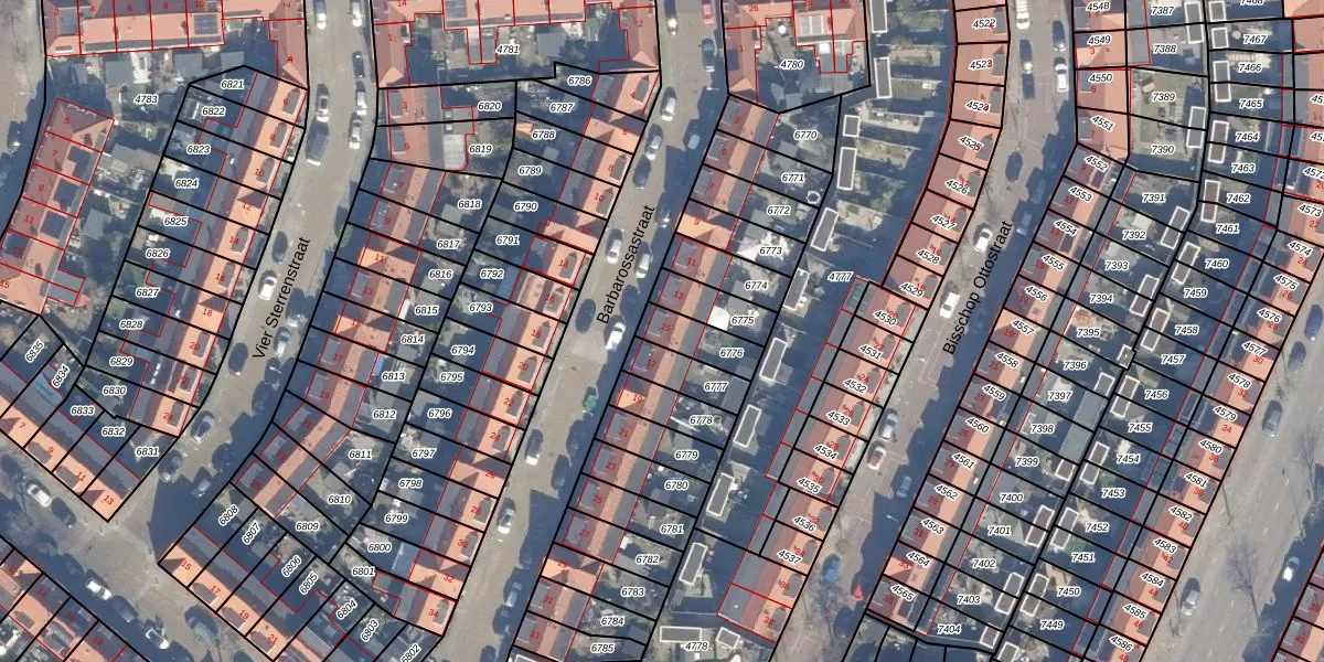 Gebruik de zoekbalk of klik op een perceel voor informatie over de adressen binnen dit perceel.