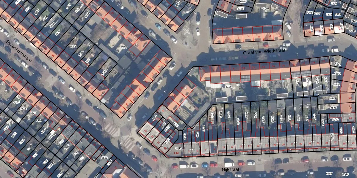 Het perceel waarop Barbarossastraat 39 staat heeft een oppervlakte van 1583 m². Dit is een zeer groot perceel. De perceeloppervlakte wordt geregistreerd door het Kadaster. Gedetailleerde informatie over de maten van dit perceel kunt u vinden in het rapport Kadastrale kaart met maatvoering van Barbarossastraat 39.