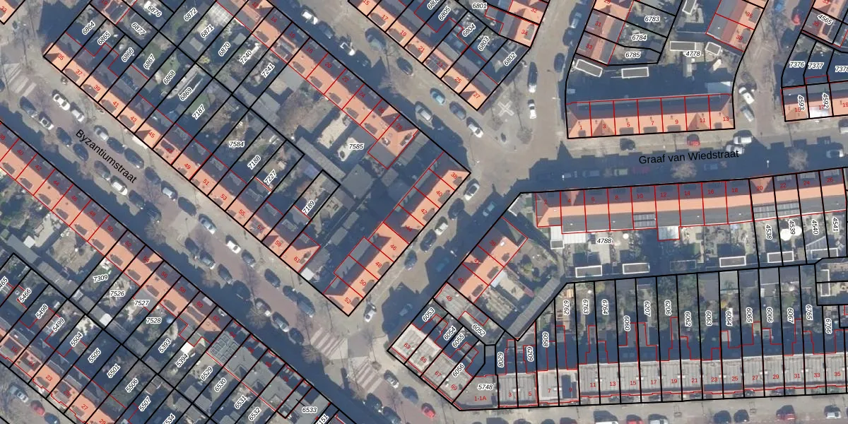 Het perceel waarop Barbarossastraat 42 staat heeft een oppervlakte van 1823 m². Dit is een zeer groot perceel. De perceeloppervlakte wordt geregistreerd door het Kadaster. Gedetailleerde informatie over de maten van dit perceel kunt u vinden in het rapport Kadastrale kaart met maatvoering van Barbarossastraat 42.