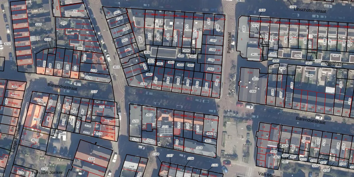 Het perceel waarop Barendsestraat 13 staat heeft een oppervlakte van 74 m². Dit is een klein perceel. De perceeloppervlakte wordt geregistreerd door het Kadaster. Gedetailleerde informatie over de maten van dit perceel kunt u vinden in het rapport Kadastrale kaart met maatvoering van Barendsestraat 13.
