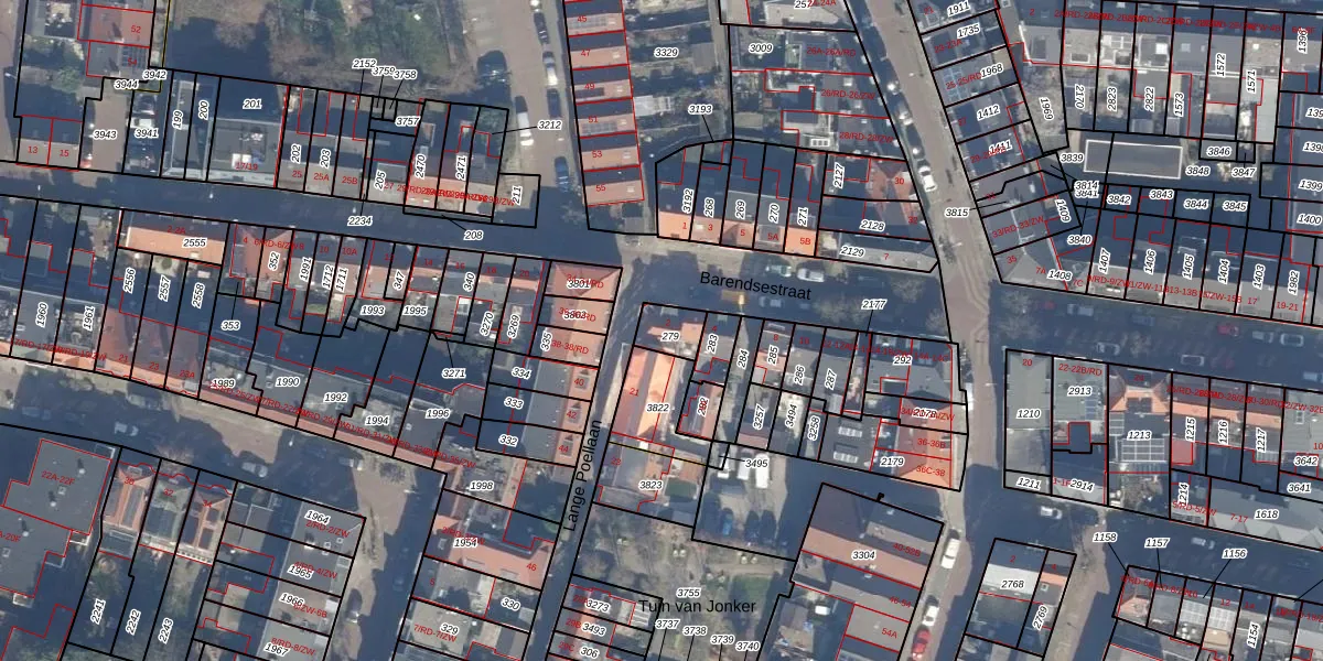 Gebruik de zoekbalk of klik op een perceel voor informatie over de adressen binnen dit perceel.