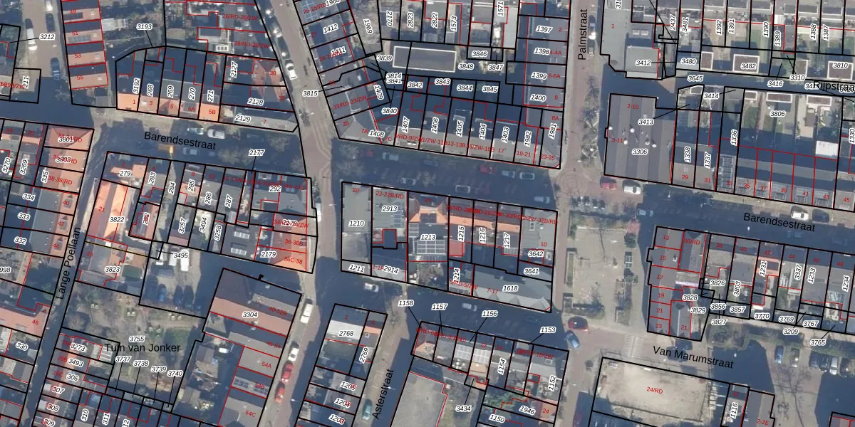 Het perceel waarop Barendsestraat 24 staat heeft een oppervlakte van 212 m². Dit is een middelgroot perceel. De perceeloppervlakte wordt geregistreerd door het Kadaster. Gedetailleerde informatie over de maten van dit perceel kunt u vinden in het rapport Kadastrale kaart met maatvoering van Barendsestraat 24.