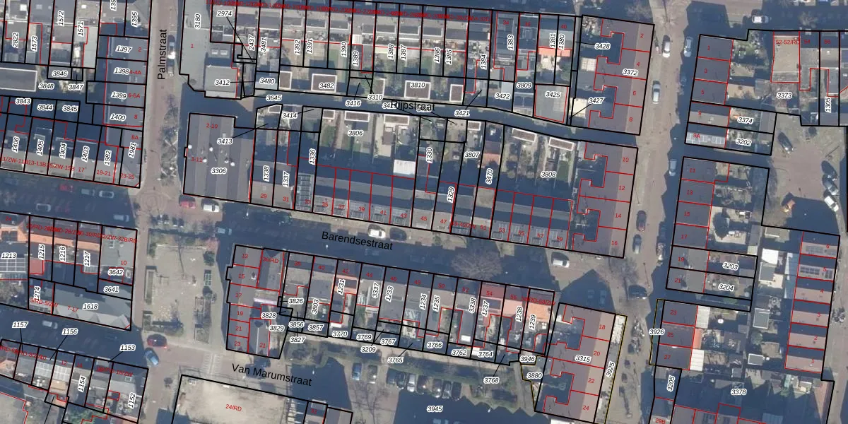 Het perceel waarop Barendsestraat 45 staat heeft een oppervlakte van 112 m². Dit is een middelgroot perceel. De perceeloppervlakte wordt geregistreerd door het Kadaster. Gedetailleerde informatie over de maten van dit perceel kunt u vinden in het rapport Kadastrale kaart met maatvoering van Barendsestraat 45.
