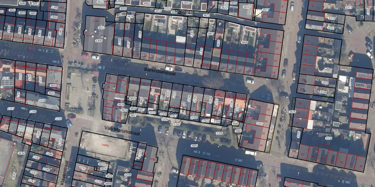 Barendsestraat 48 is gelegen op kadastraal perceel HLM01K1234. Deze kadastrale aanduiding is uniek en wordt gebruikt door het Kadaster om eigendomsrechten en andere zakelijke rechten vast te leggen. Het perceel maakt onderdeel uit van de kadastrale gemeente Haarlem.