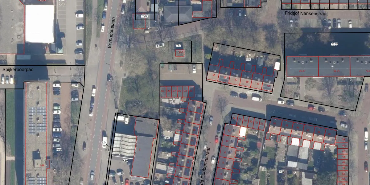 Het perceel waarop Baron de Coubertinstraat 23 staat heeft een oppervlakte van 1785 m². Dit is een zeer groot perceel. De perceeloppervlakte wordt geregistreerd door het Kadaster. Gedetailleerde informatie over de maten van dit perceel kunt u vinden in het rapport Kadastrale kaart met maatvoering van Baron de Coubertinstraat 23.