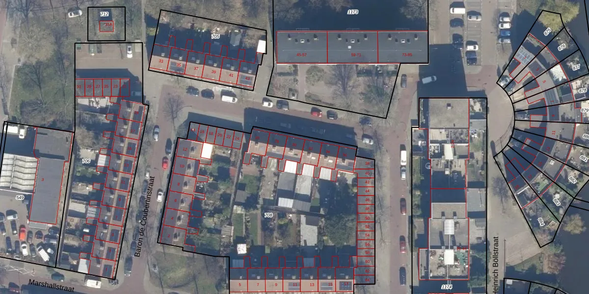 Het perceel waarop Baron de Coubertinstraat 30 staat heeft een oppervlakte van 3480 m². Dit is een zeer groot perceel. De perceeloppervlakte wordt geregistreerd door het Kadaster. Gedetailleerde informatie over de maten van dit perceel kunt u vinden in het rapport Kadastrale kaart met maatvoering van Baron de Coubertinstraat 30.